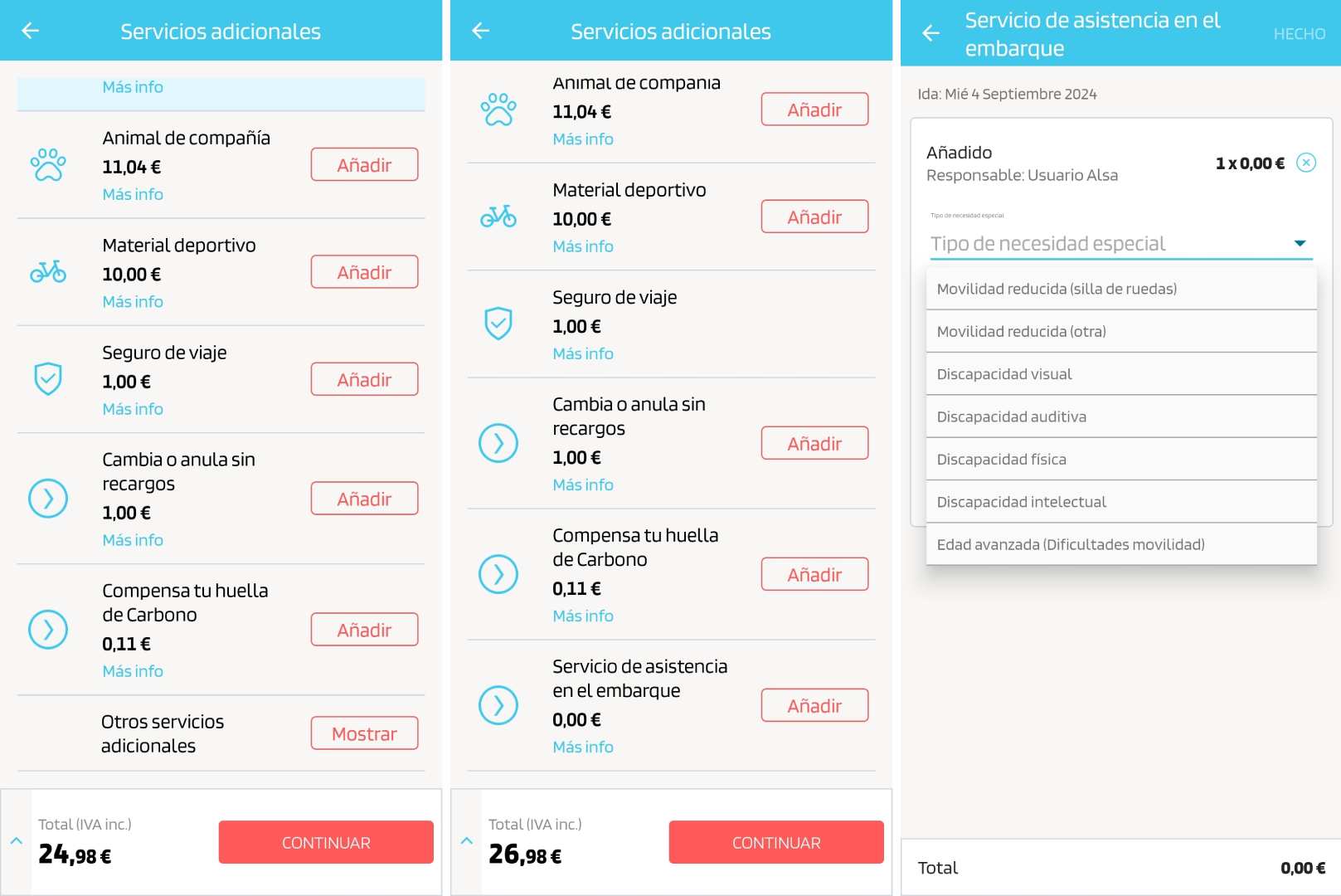 En aquellos servicios en los que esté disponible un servicio de asistencia, una vez que has seleccionado la fecha y el origen/destino del viaje y completado los datos del pasajero: