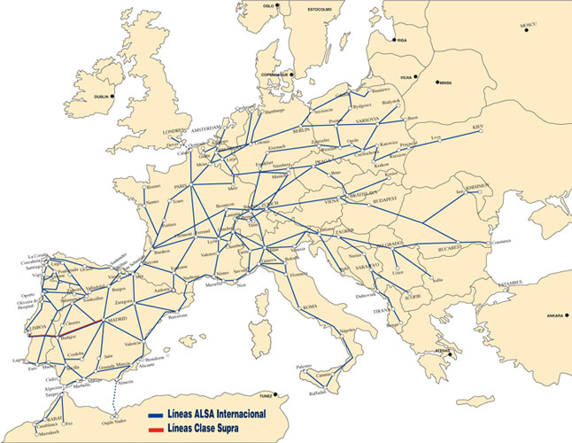 En Europa, opera en una amplia red de conexiones intraeuropeas mediante la explotación de 65 autorizaciones internacionales que unen España con la mayor parte de la Unión Europea y el norte de África. Además, está presente en Portugal, Francia, Bélgica, Suiza y Alemania, y es miembro de Eurolines.