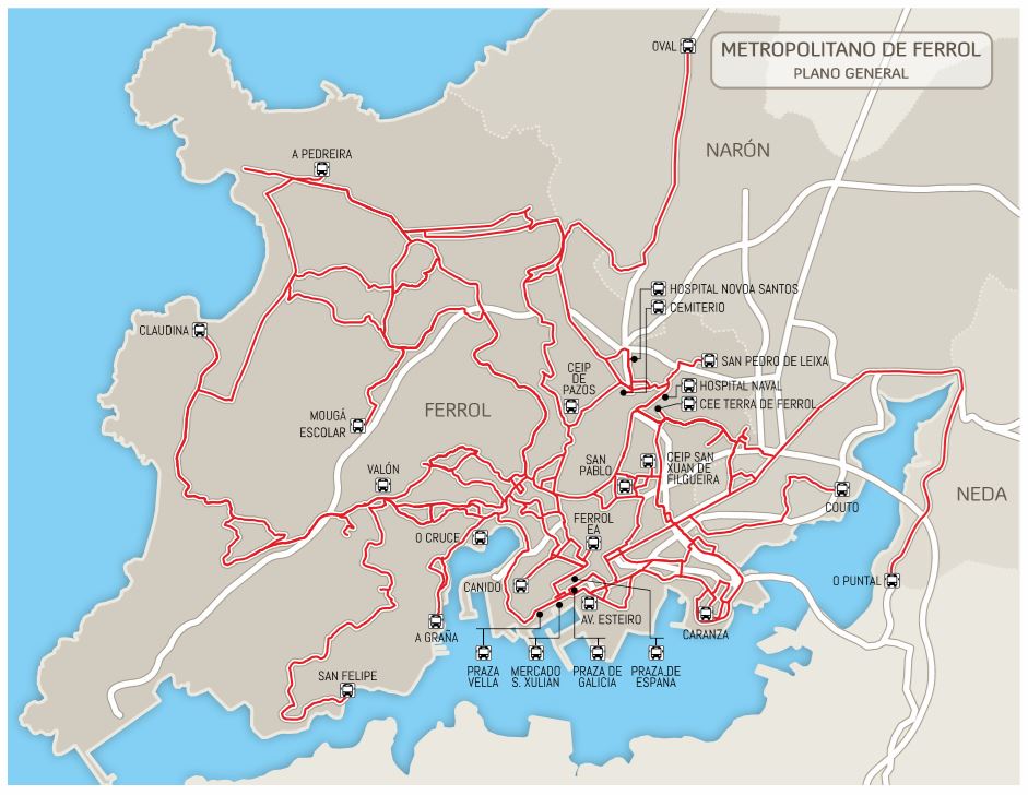 Plano general de las RUTAS de SERVICIOS URBANOS