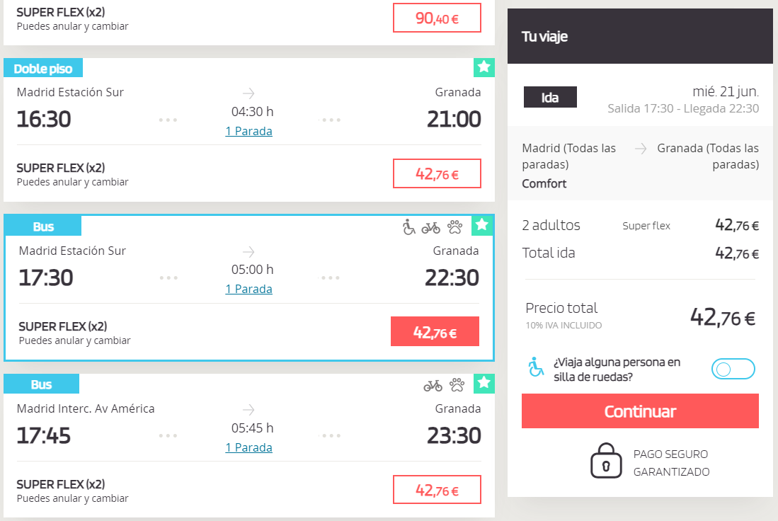 Antes de darlle a CONTINUAR, activa o botón xunto á pregunta «Viaxa algunha persoa en cadeira de rodas?»